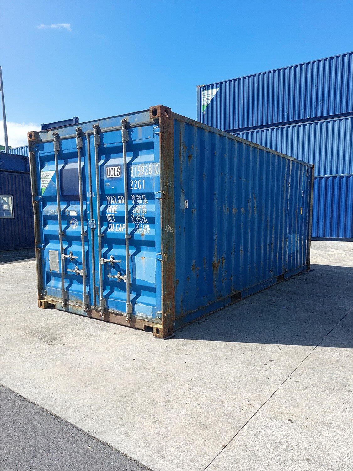 This wind & watertight 20ft container features some rust spots on both the interior and external walls which is easily remedied with a new paint job. This is otherwise a great static storage solution providing protection from the elements with over 33 cubic metres of internal capacity providing ample storage space.